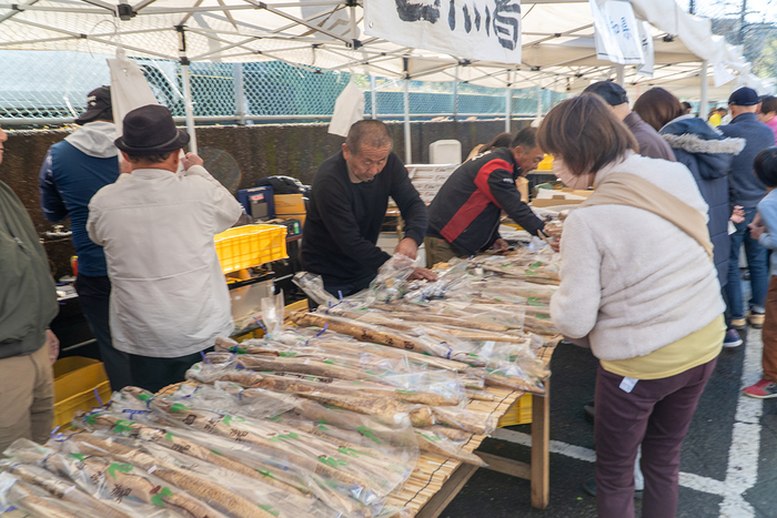佐竹さん:中山地区の特産品である山芋(自然薯)そのものはもちろん、田舎寿司、鮎の塩焼き、山芋コロッケ、山芋汁など、いろいろありますね。9時にスタートして、11時過ぎには大体のものが売り切れてしまいました。